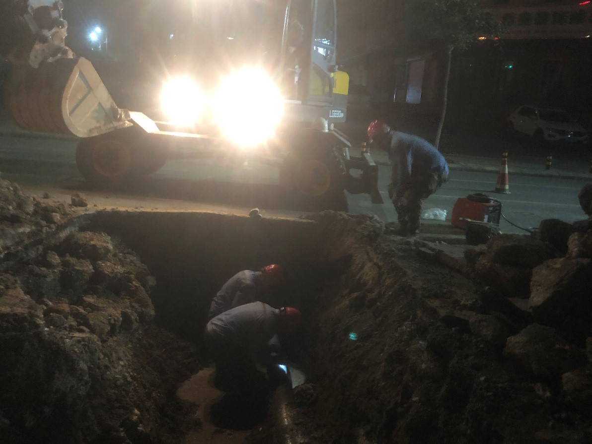2020年7月6日14時(shí)許,在排查過(guò)程中發(fā)現(xiàn)紅星街處供水管線破裂,為了不影響高考期間供水,我公司立即組織人員搶修,17時(shí)完成搶修工作,恢復(fù)正常供水。20時(shí)左右,又有市民反映西山路處有漏水情況,我公司馬上組織人員檢查,最后發(fā)現(xiàn)西山路處一分支管線破裂漏水,為了保障周邊兩個(gè)小區(qū)的用水,我公司立即維修,23時(shí)完成了維修,保障了周邊小區(qū)高考期間的安全供水。